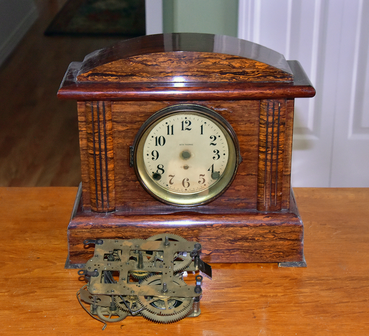 Ansonia Wall ClockVeneer Damage but running$60 Waterbury Kitchen ClockPiece at top missingRunning$60 Gilbert 8 day Cottage14 with alarm$50 Seth Thomas Cottage30 hr with remarkable hand painted glass$50 ST school Gallery 15 1/28 day$100 Seth Thomas ArchtopLock on side, 8 dayVeneer damage but desirable clock 15 1/2$200 Seth Thomas 8 day Clock$60 Seth Thomas adamantine Clock$60 Seth Thomas Hardy & Hays dialSonora with5 bells 14 1/2$400 Seth Thomas Chime clock #72Strikes on gongs 15$250 Seth Thomas adamantine with loose movement$35 Junghans Chime on Gongs13$150 Seth Thomas 4 free column adamantine clock$200 Seth Thomas 4 free column adamantine clock$200 Seth Thomas 4 free column adamantine clock$200 New Haven Beehive with cracked glass 8Day, veneer missing as in pic$75 Seth Thomas 4 free column adamantine clock$200 Ingraham Cabinet Clock8 day, 15$125 Ingraham mantle Clock$75 Large Seth Thomas 5 bell Sonora Chime clock (adamantine)$450 Seth Thomas school wall clock15 1/2$ EN Welch late 1800s mantle clock$175 EN Welch late 1800s mantle clock$175 Winterhalder Hoffmeier T&SLibrary clockTall at 17Top veneer damage$175 Bunch of mixed collets All Moseley collets in box Total of 79$600 Moseley USA made Micrometer tailstock lathe (stand available)$200 Waterbury wall clockdeadbeat escapement that needs a replacement escape wheel$75 Wind up cuckooNeeds work with bellows and screw in front of clock. Not a difficult repair. Case missing trim$450 Seth Thomas World clock Some dial damage, 15 day deadbeat escapement$250 « ‹ of 2 › » Copyright 2026 Dean Lapinel, Boise, Idaho Email deloid@gmail.com